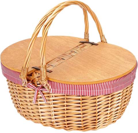 Mây Liễu Liễu Gai Tròn Hình Bầu Dục Cách Nhiệt Làm Mát Bằng Gỗ Tre Nắp Đậy Dã Ngoại Giỏ Quà Tặng Kèm Bàn Dã Ngoại Xách Tay